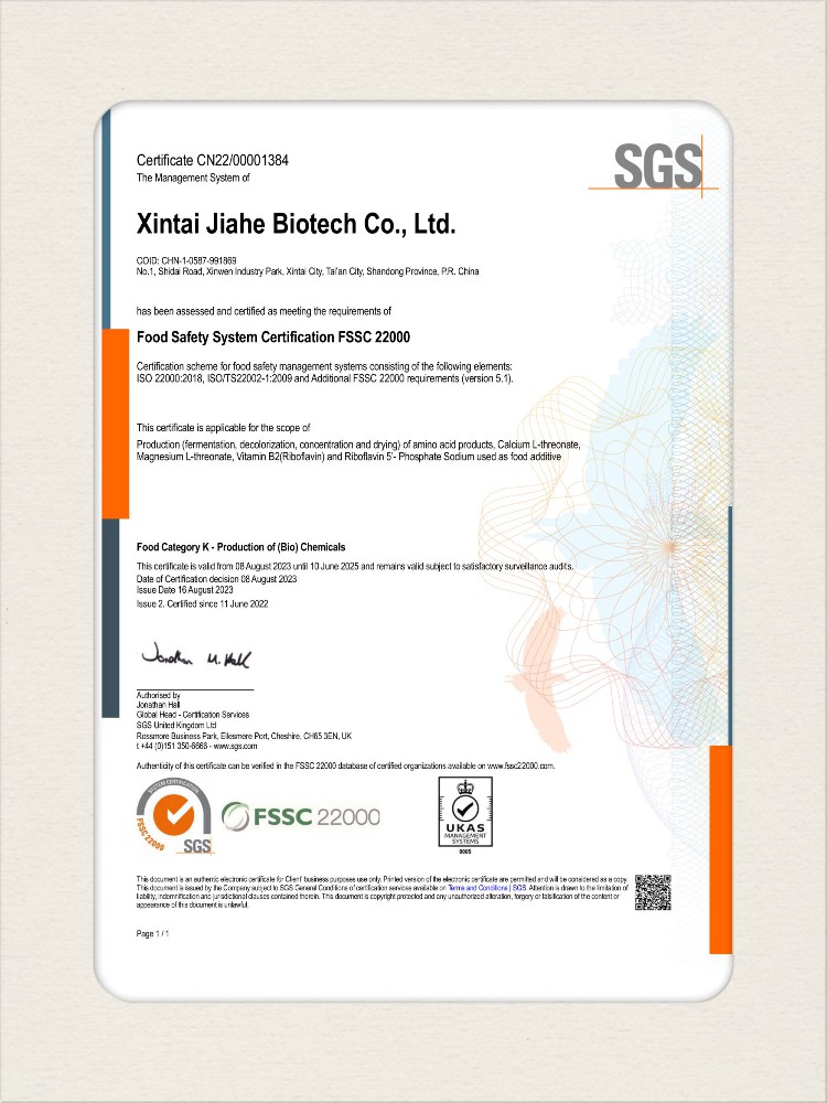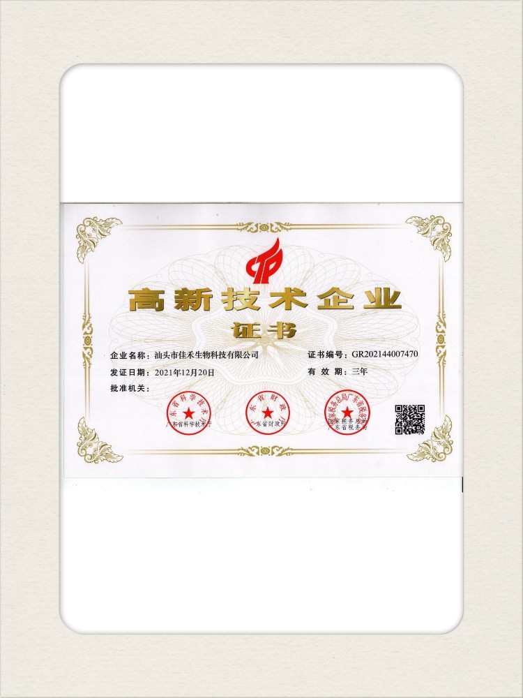 汕頭佳禾生物科技有限公司是一家致力于氨基酸及其衍生物研發(fā)、生產(chǎn)和銷售的國(guó)家高新技術(shù)企業(yè),先后通過(guò)了國(guó)家藥品GMP認(rèn)證,ISO9001質(zhì)量體系認(rèn)證、ISO14001環(huán)境管理體系認(rèn)證。目前,公司擁有“廣東省專精特新中小企業(yè)”、“廣東省氨基酸產(chǎn)品工程技術(shù)研究中心”、“汕頭市生物發(fā)酵工程技術(shù)研究開發(fā)中心”、“汕頭市知識(shí)產(chǎn)權(quán)優(yōu)勢(shì)企業(yè)”、“多項(xiàng)國(guó)家發(fā)明專利”、“廣東省守合同重信用企業(yè)”等多項(xiàng)資質(zhì)和榮譽(yù),旗下“佳禾牌”系列產(chǎn)品已成為原料藥行業(yè)知名品牌。 新泰市佳禾生物科技有限公司成立于2012年8月,注冊(cè)資金2億元,公司位于山東泰安新泰市新汶工業(yè)園區(qū),是國(guó) 家級(jí)高新技術(shù)企業(yè)、山東省“專精特新”企業(yè)、山東省制造業(yè)單項(xiàng)冠軍企業(yè)、泰安市科技型中小企業(yè)、泰安市農(nóng)業(yè)產(chǎn)業(yè)化龍頭企業(yè)、中國(guó)生物發(fā)酵產(chǎn)業(yè)協(xié)會(huì)理事單位。